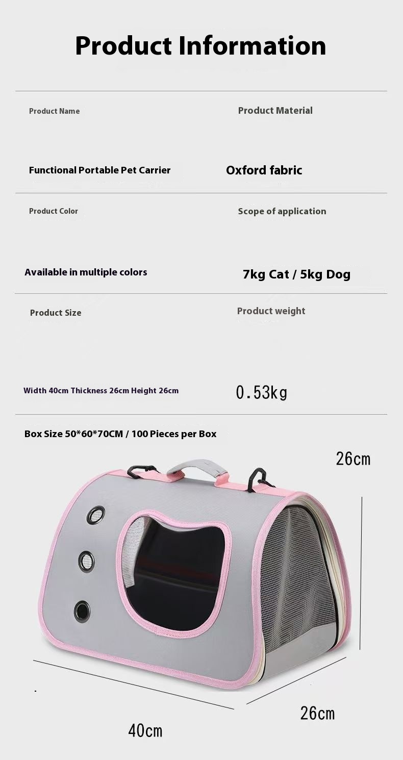 Travel comfortably with your furry friend using this portable pet bag designed for spaciousness and breathability. Crafted with durable Oxford PVC material, it offers a medium-hard structure that provides reliable protection while ensuring your pet stays cozy and ventilated on the go.